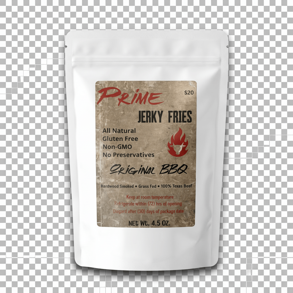 Each bag of our jerky fries was hand-sliced, stripped, infused, and marinated for 24 hours, then smoked over applewood, soaking in the rich, savory depth of our amazing BBQ sauce – a blend perfected by two generations and steeped in Texas barbecue tradition. It’s the perfect marriage of bold smoke, authentic sweetness, and a touch of heat that keeps you coming back for more. This product weighs 4.5 oz.